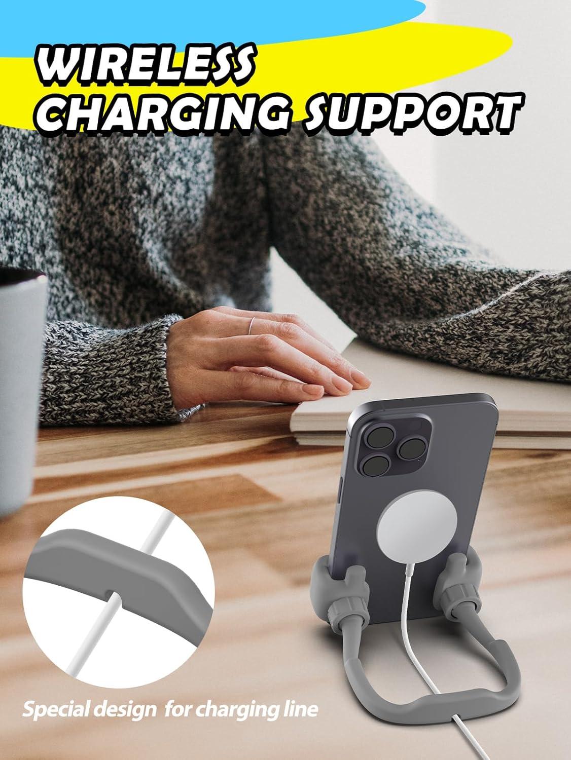 [Eco-Friendly & Durable, Stable & Reliable] Made with upgraded eco-friendly materials, the cell phone holder for your desk provides extra strength & stability for your devices due to its widened & thickened. Its strong anti-slip grip prevents your cellphone from falling and scratching. The soft touch and realistic finger-holding-phone design offer a more lifelike experience. It features a hole at the back for easy through cable when charging, Perfectly solves all the problems you may encounter
