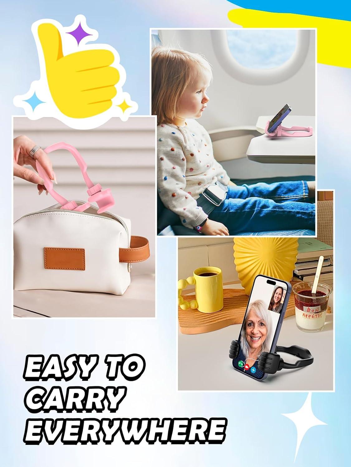 Stocking Stuffers for Teens Boys Girls Cell Phone Stand: Upgrade Adjustable Thumbs Up Lazy Phone Holder for Desk Fun Birthday Gifts for Grandma Adults Husband from Wife(Black & Pink)