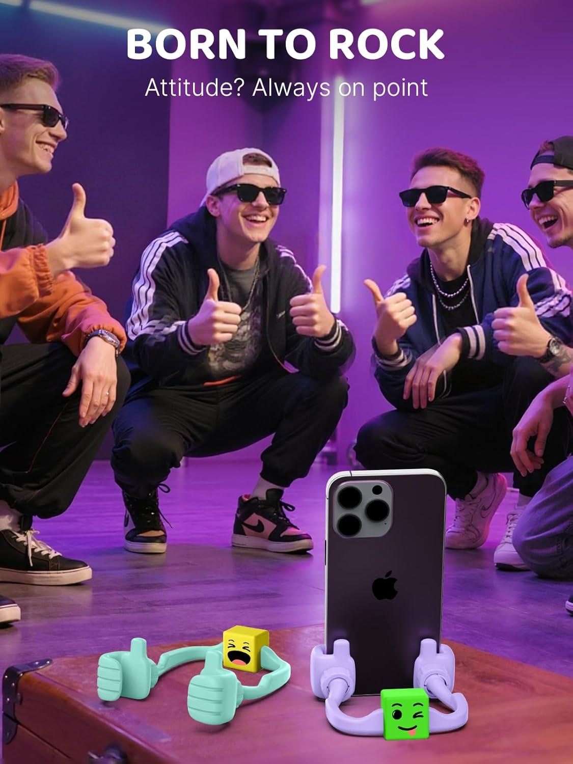 Stocking Stuffers for Teens Boys Girls Cell Phone Stand: Upgrade Adjustable Thumbs Up Lazy Phone Holder for Desk Fun Birthday Gifts for Grandma Adults Husband from Wife(Purple&Green&Yellow&Green)