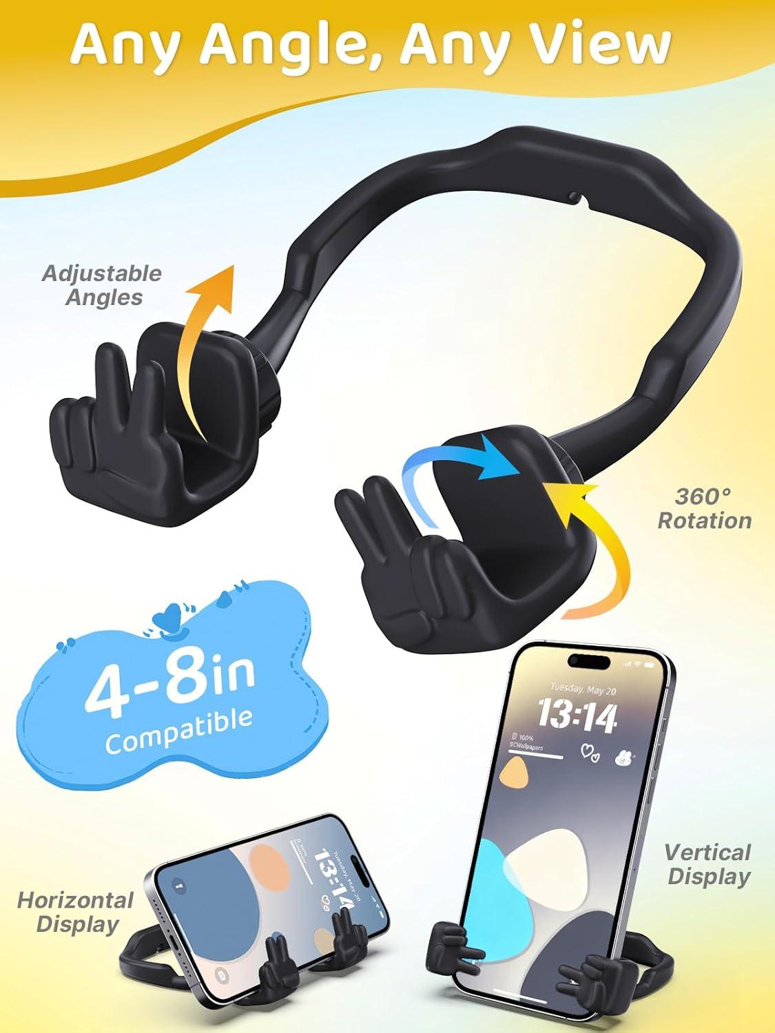 Patented 360° Adjustable Freedom: Experience ultimate viewing flexibility with CALDEVER's cell phone stand for desk exclusive patented design, featuring a 360-degree rotating base and an adjustable wrist that pivots from 0-40°, effortlessly switching between horizontal and vertical screens; This universal phone stand accommodates all 4-8 inch smartphones and tablets, even with cases, ensuring stable support for any device, any angle