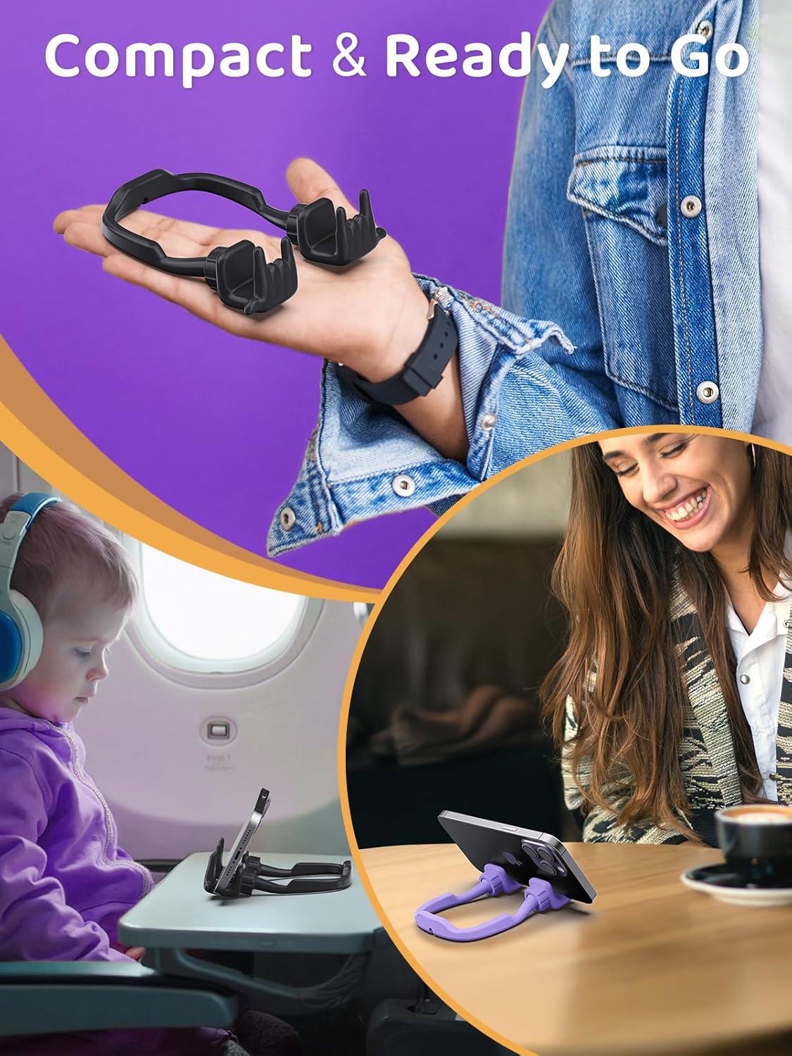 Ultra-Portable for Every Setting: Weighing a mere 34g (3.1in x 4.5in), this lightweight and compact iphone stand for desk is your go-anywhere companion; Seamlessly integrate it into your daily life – whether it's powering through work at your office desk, work from home, online classes, following recipes in the kitchen, enjoying entertainment in the living room, studying in your dorm, or staying connected on an airplane; Perfect gifts for men or women
