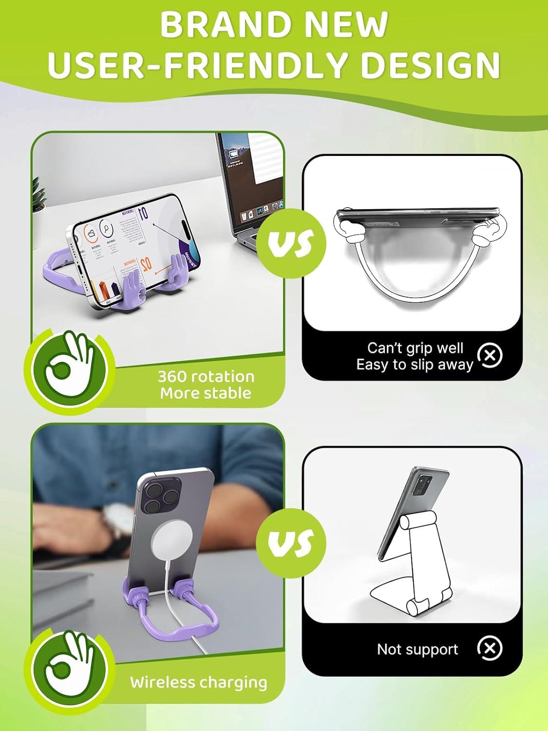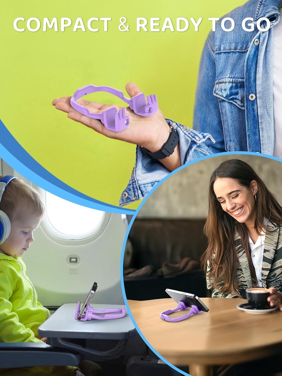 Ultra-Portable for Every Setting: Weighing a mere 34g (3.1in x 4.5in), this lightweight and compact iphone stand for desk is your go-anywhere companion; Seamlessly integrate it into your daily life – whether it's powering through work at your office desk, work from home, online classes, following recipes in the kitchen, enjoying entertainment in the living room, studying in your dorm, or staying connected on an airplane; Perfect gifts for men or women