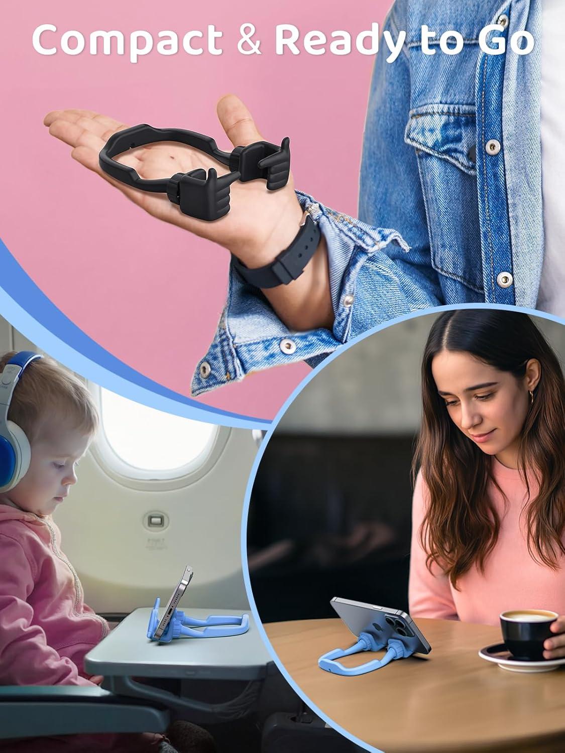 Ultra-Portable Travel Must Have Multi-Purpose Tablet Stand for Every Adventure: Weighing just 1.4 ounces and compact at 3.1in x 4.5in, this lightweight cellphone stand holder is your perfect travel companion. Effortlessly use it across multiple scenes: from your office desk to the kitchen counter, cozy bedroom nightstand, or even on an airplane for hands-free entertainment. It's an essential portable cell phone accessory for anyone seeking convenience and flexibility in their daily life