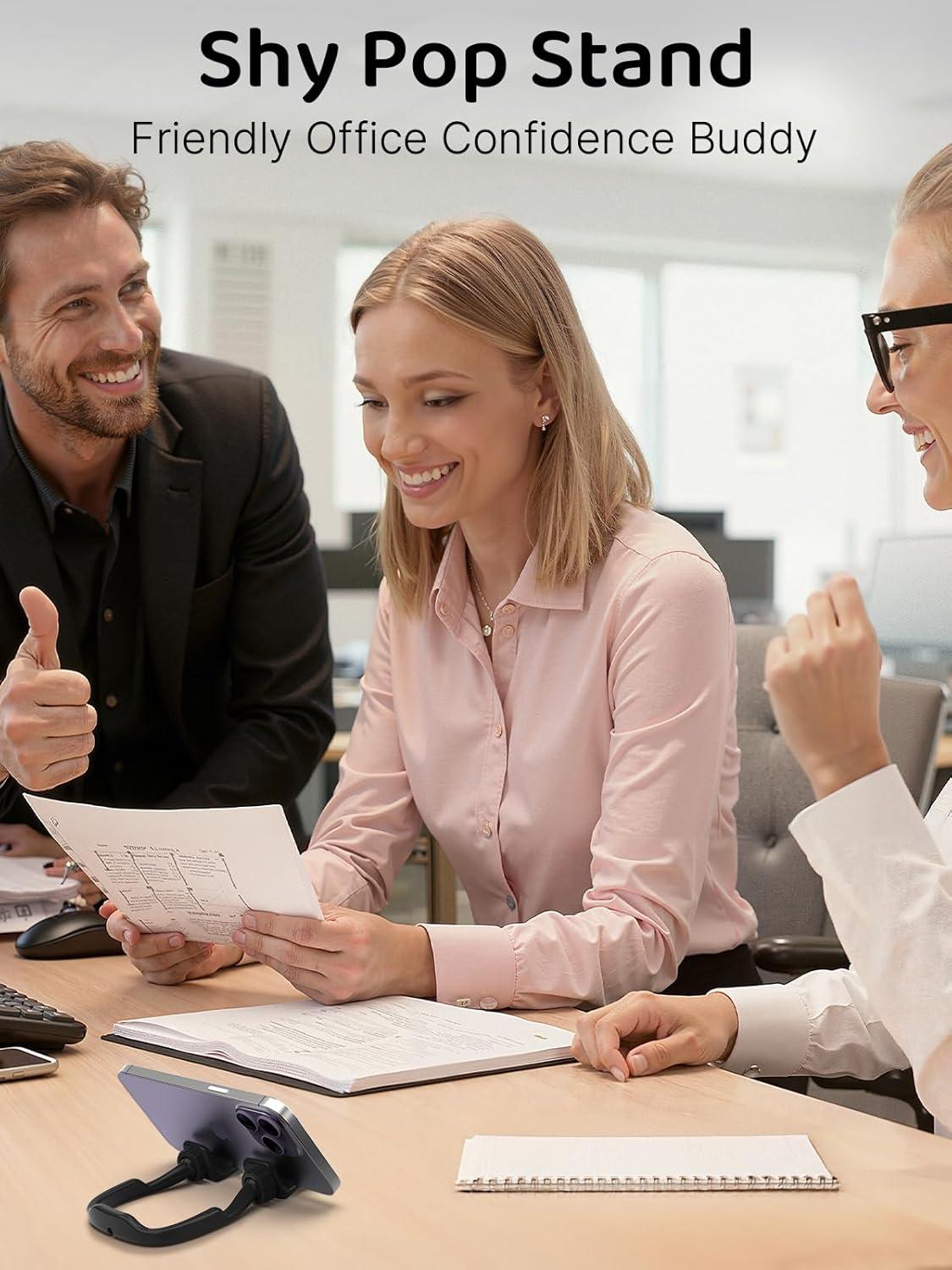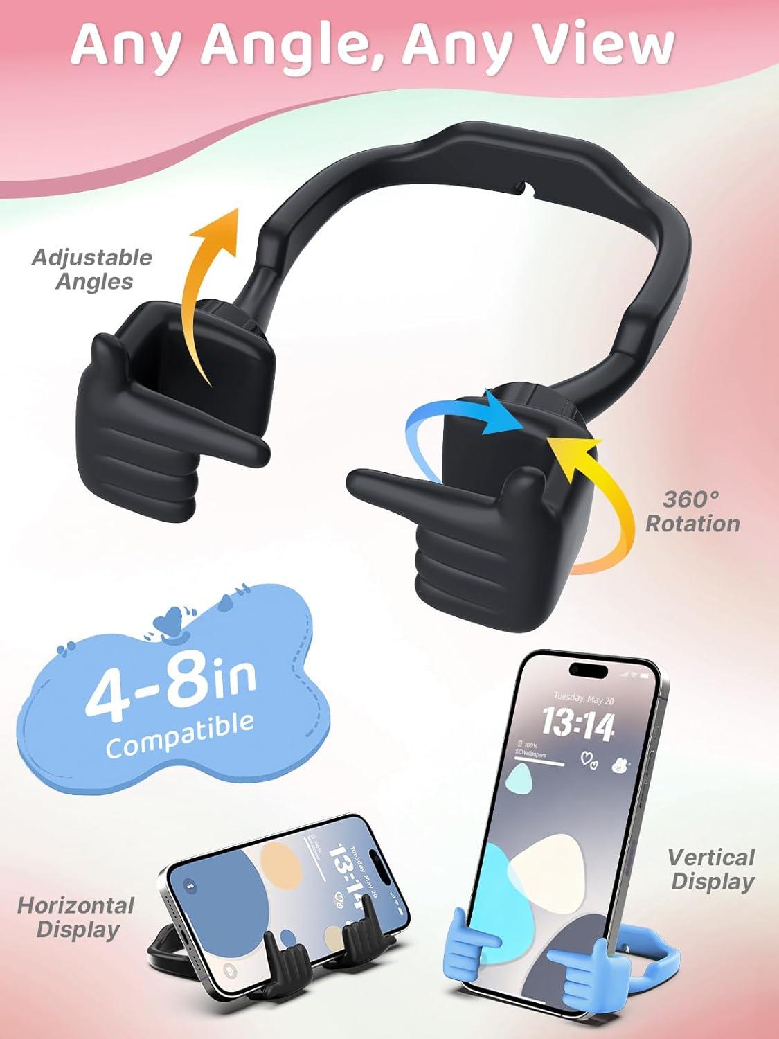 Patented 360° Rotation & Adjustable Angle Phone Holder for Desk: Discover unparalleled viewing flexibility with our CALDEVER Shy gesture thumbs phone stand, featuring an exclusive 360-degree rotating head and unique adjustable wrist angle; Seamlessly switch between horizontal and vertical screens, finding your perfect 0-40° viewing angle for any task; This universal cell phone holder ensures ultimate stability for your phone or iPad mini, making it the ideal phone stand for desk or table