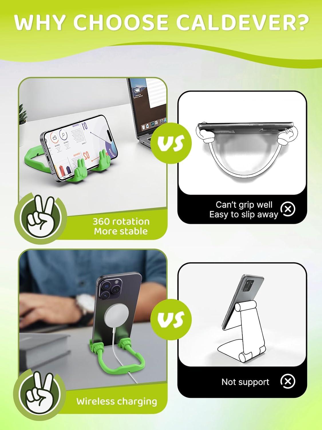 Premium Durable Material for Enhanced Stability: Crafted from high-grade ABS material, our CALDEVER mobile phone holder for iPhone iPad mini provides a solid, anti-slip grip that feels natural and secure; This upgraded design ensures your cell phone or tablet (4-8 inches) stays firmly in place without scratching your device; Enjoy a stable, worry-free experience whether you're working, watching, or creating with CALDEVER durable cell phone stand