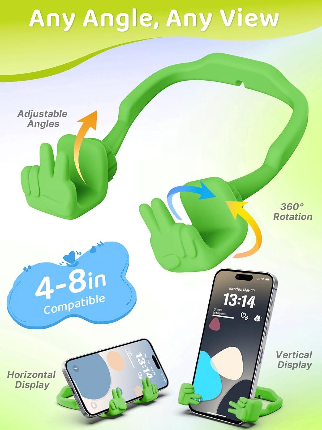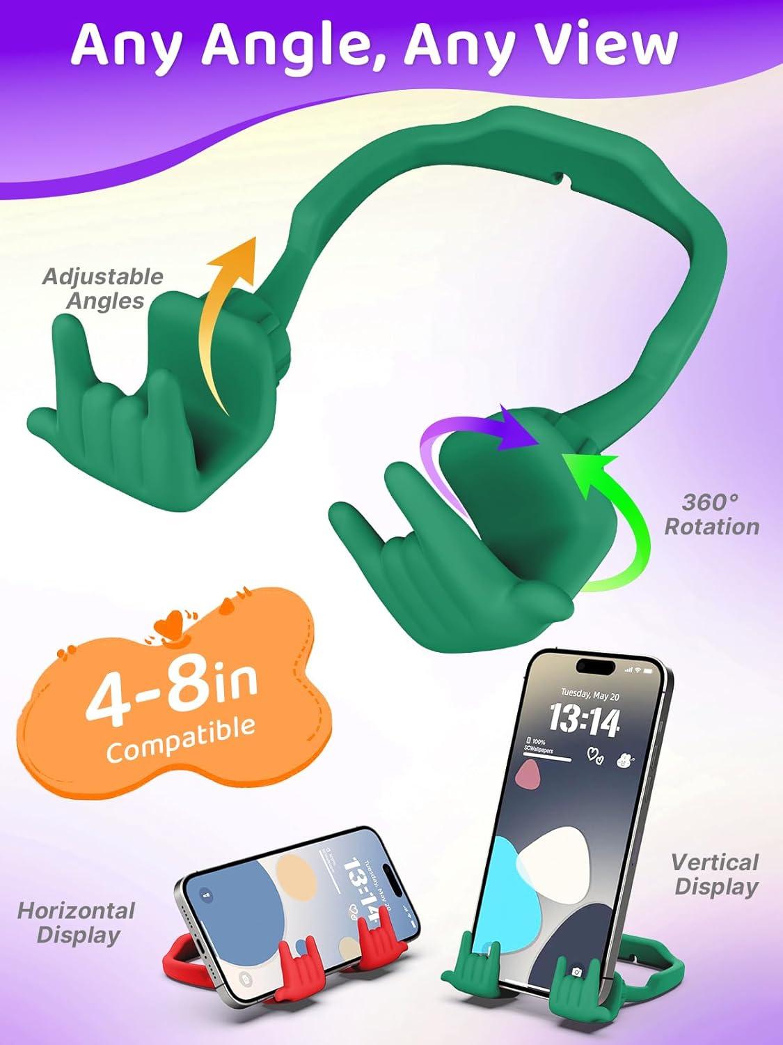 Patented 360° Rotation & Adjustable Angle Phone Holder for Desk: Discover unparalleled viewing flexibility with our CALDEVER Shy gesture thumbs phone stand, featuring an exclusive 360-degree rotating head and unique adjustable wrist angle; Seamlessly switch between horizontal and vertical screens, finding your perfect 0-40° viewing angle for any task; This universal cell phone holder ensures ultimate stability for your phone or iPad mini, making it the ideal phone stand for desk or table
