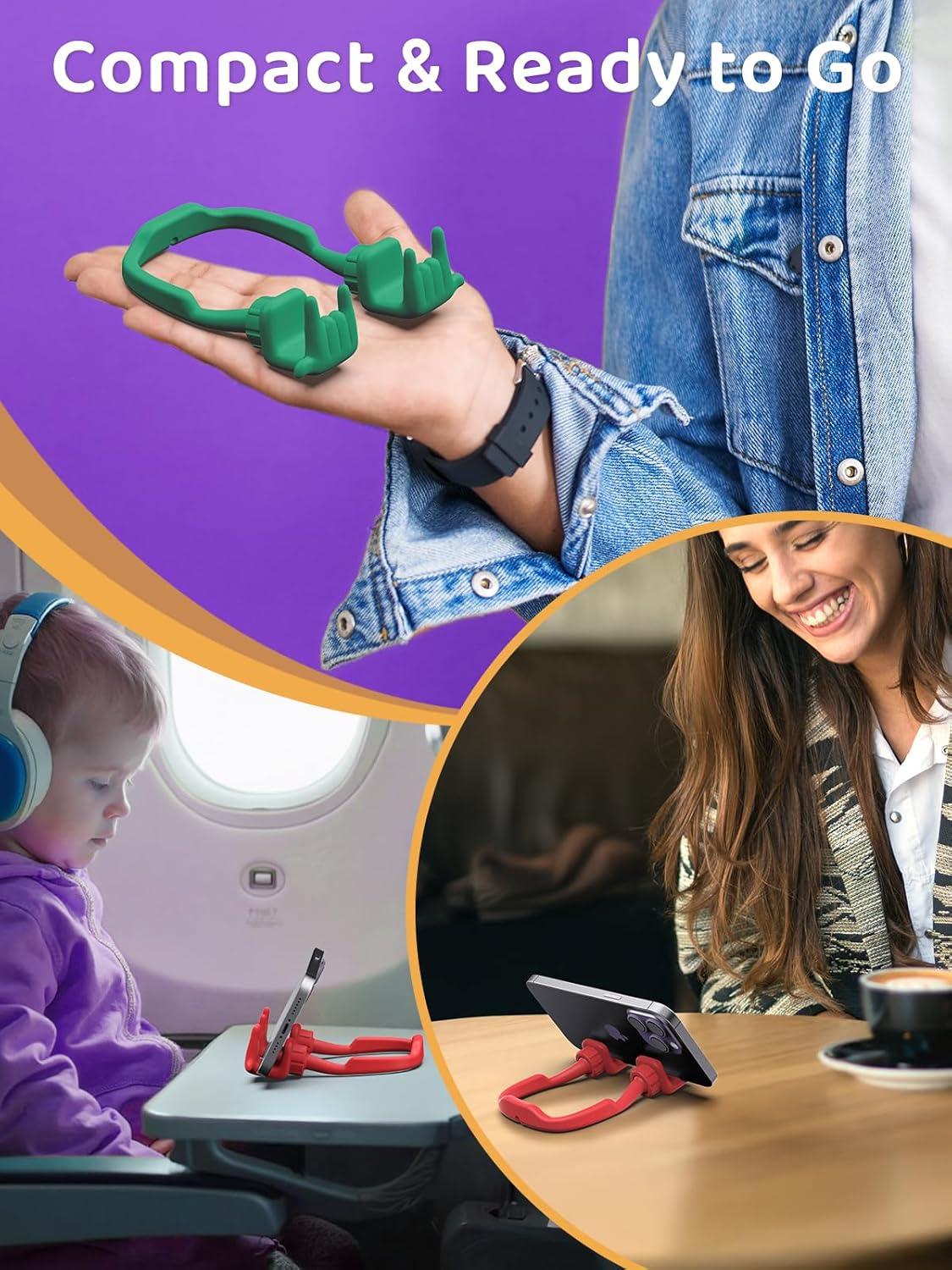 Ultra-Portable Travel Must Have Multi-Purpose Tablet Stand for Every Adventure: Weighing just 1.4 ounces and compact at 3.1in x 4.5in, this lightweight cellphone stand holder is your perfect travel companion. Effortlessly use it across multiple scenes: from your office desk to the kitchen counter, cozy bedroom nightstand, or even on an airplane for hands-free entertainment. It's an essential portable cell phone accessory for anyone seeking convenience and flexibility in their daily life