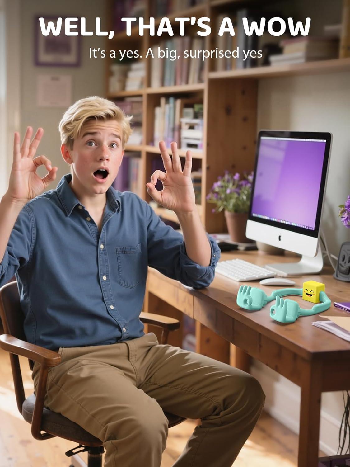 Expressive OK Gesture & Vibrant Vibe: More than a stand, it's a statement! This unique “OK” hand gesture cell phone holder radiates positive energy, making it the perfect mood-lifting desk accessory or a thoughtful gift; Adorned in trendy Macaron and Dopamine color palettes, it's an ideal gifts for teen boys, girls, kids, adults, coworkers, husband, wife, friends, and coworkers, suitable for Christmas stocking stuffers for teens, Easter basket stuffers, birthdays gifts, or Valentines Day gifts