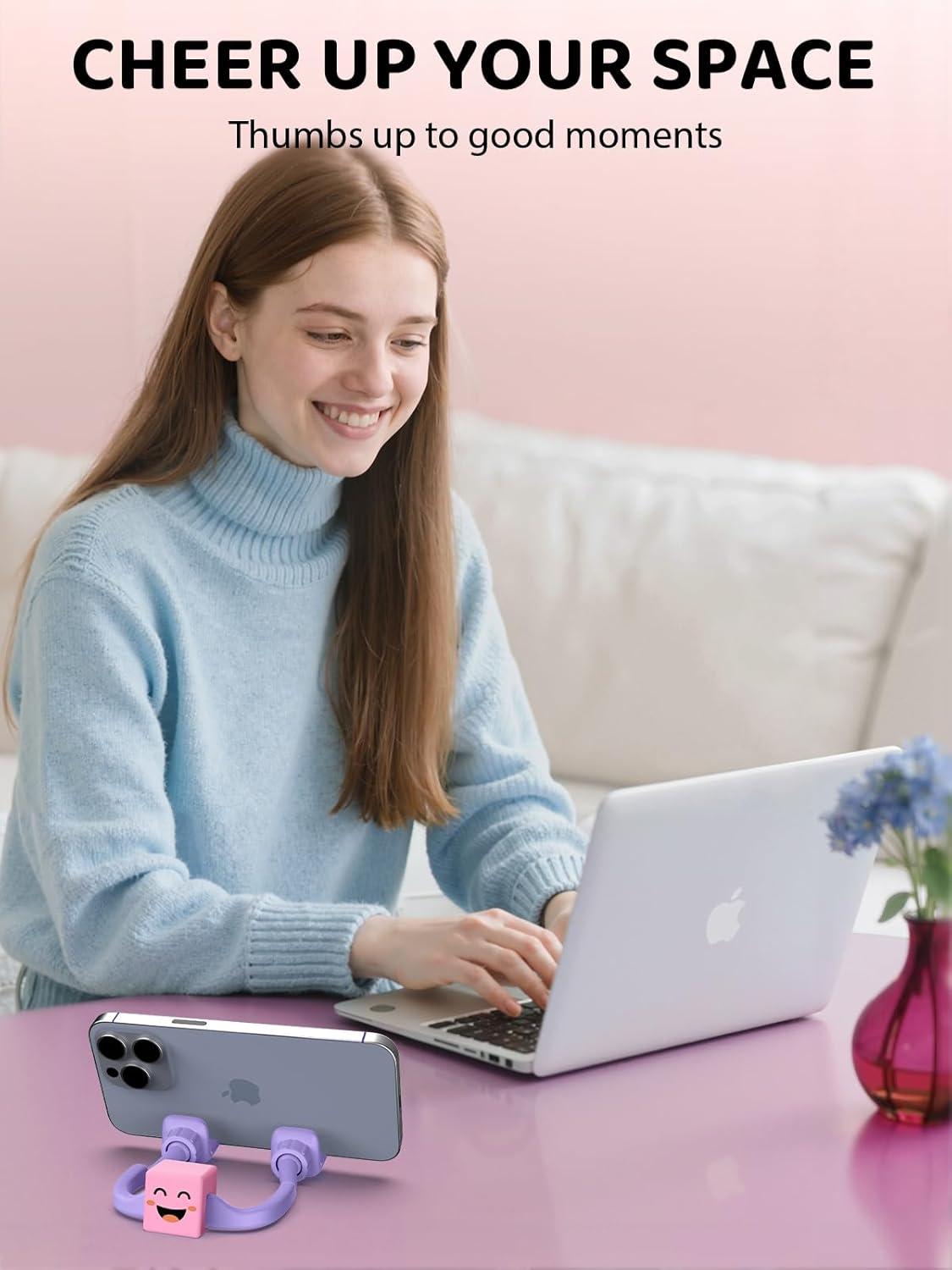 Stocking Stuffers for Teens Girls Women Gifts: Cell Phone Holder OK Sign Adjustable Phone Holder for Desk Gift for Adults Kids Teenage Birthday Funny Cool Gadget Trendy Stuff Ideas Gifts for Christmas(Purple&Green + Yellow&Pink)